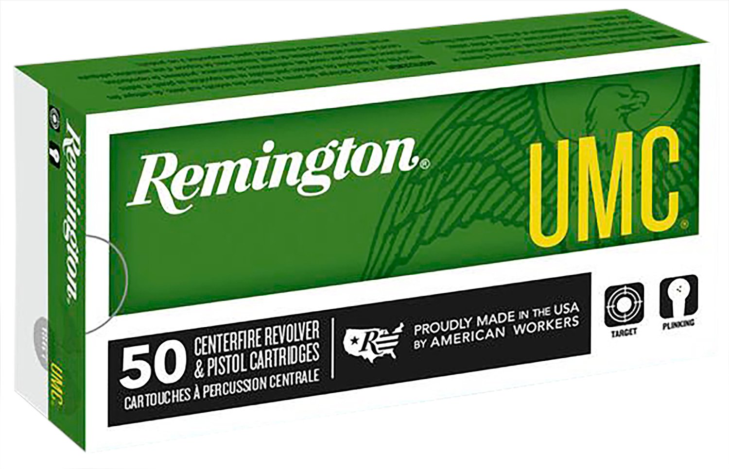 All UMC handgun ammunition is American-made, using first-quality, factory-fresh brass, and clean-shooting Kleanbore primers to provide the best value for practice, personal defense, and hunting.