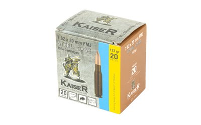 Featuring 123 Grain full metal jacket projectile paired with steel cased berdan primmed case, Kaiser 7.62×39 ammunition is a perfect match for your 7.62×39 Rifles!