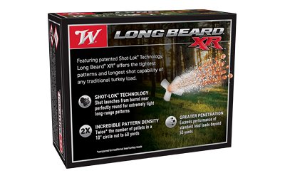 Forty yards has long been the standard by which all turkey loads were measured. No more. It’s time to go farther with Winchester Longbeard XR. Featuring new-to-the-world Shot-Lok Technology. Longbeard XR offers the tightest patterns and longest shot capability of any traditional turkey load in history – with twice the pellets in a 10″ circle out to 60 yards. Longbeard XR has the knockdown power of popular heavier-than-lead loads at a fraction of the cost.