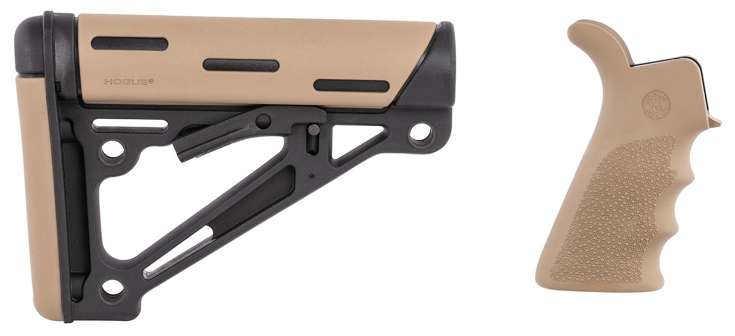 Hogue 15355 OverMolded Collapsible Buttstock Black Synthetic Flat Dark Earth OverMolded Rubber & Flat Dark Earth Rubber Finger Grooved Grip for AR-15, M16 with Commercial Tube (Tube Not Included)