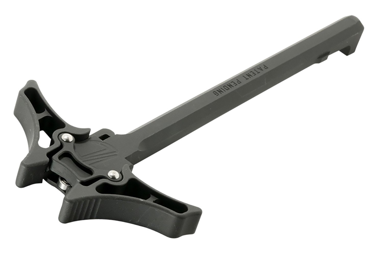 The Enforcer Ambidextrous Charging Handle is a drop-in replacement for mil-spec charging handles. Oversized levers allow for easy access and fluid operation no matter what optic is mounted above it. Featuring our Patent Pending Roller Bearing Technology, this charging handle smoothly and effortlessly unlatches when manipulated from either side of the weapon regardless of you dominate hand. CNC machined out of aircraft grade billet aluminum.
