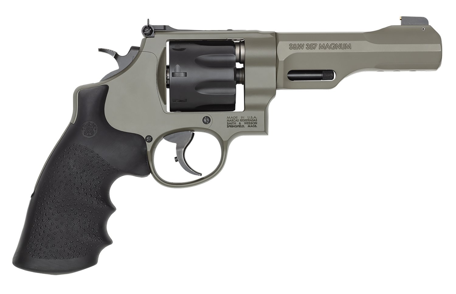 The Performance Center Model 327 TRR8 features an Elite Series Moss Cerakote; stainless steel barrel and cylinder; Scandium Alloy frame; equipment rails; gold bead front sight and black adjustable rear sight. Includes three moon clips.