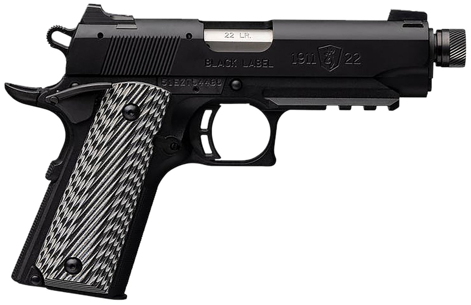 Browning 051821490 1911-22 Black Label Compact SR 22 LR 10+1 4.25″ 3.50″ Threaded Barrel, Matte Black Serrated Steel Slide & Polymer Frame w/Picatinny Rail & Beavertail, Black/Gray Textured G10 Grips