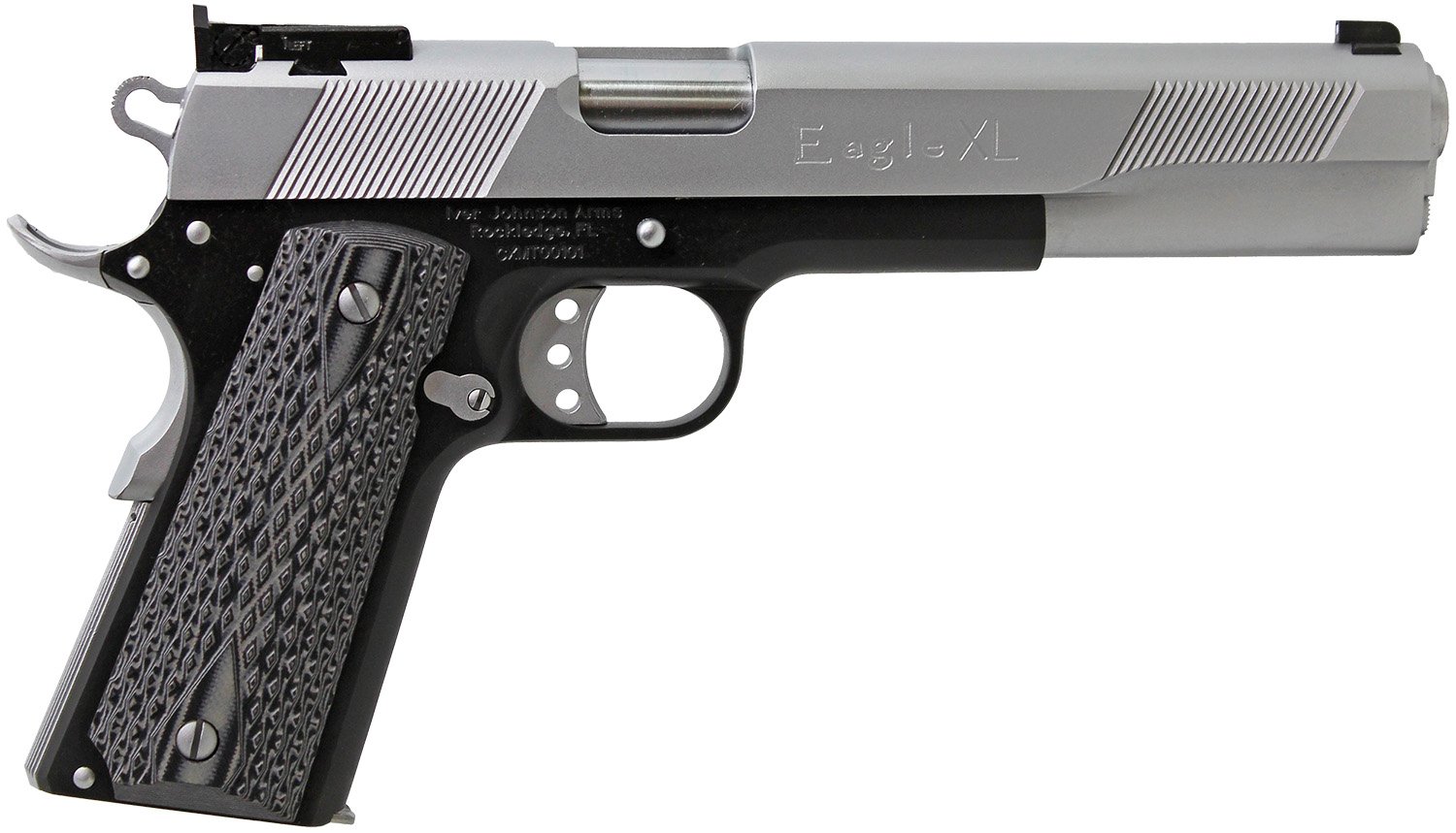 Iver Johnson Arms EAGLEXL45TT Eagle Deluxe 45 ACP 8+1 6″ Steel Barrel, Hard Chrome Serrated Steel Slide, Matte Black Steel Frame w/Beavertail, Black/Gray G10 Grip