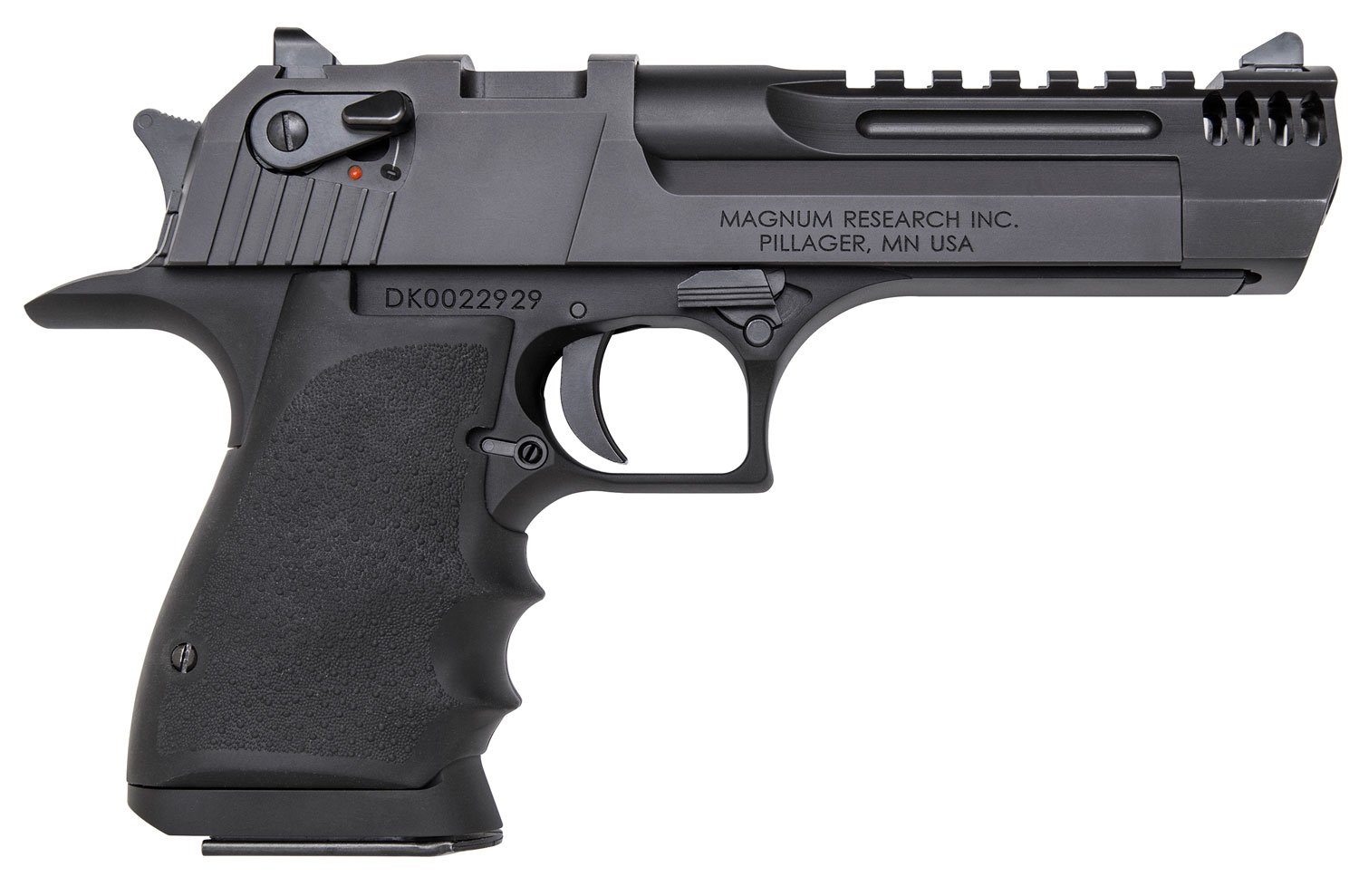 Magnum Research DE445IMB Desert Eagle L5 44 Rem Mag 5″ with Muzzle Brake 8+1 Black Hardcoat Anodized Aluminum Frame Black Carbon Steel Slide Black Hogue Wraparound Grip