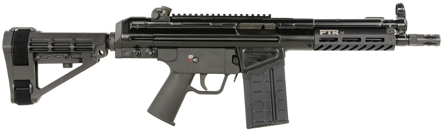 PTR PDWR BR 308 Win 20+1 8.50″ Black Nitride Heavy Contour Threaded Barrel, Black Parkerized Aluminum Picatinny Rail Receiver, SB Tactical Brace, Black Polymer Grip