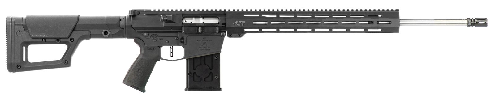 Twist Rates: – 22-250 REM: 1:14 in Stainless Steel 1:12 in Carbon Fiber (CALL US for Carbon Fiber Upgrade) – .22 Creedmoor: 1:8 – 243 WIN: 1:10 – 6mm Creedmoor: 1:8 – 6.5 Creedmoor: 1:8 – – Take your varmint hunting to the next level with the APF Armory AR10 Varmint 2.0 a precision-engineered powerhouse built to dominate the fields with lethal accuracy! – Crafted by Alex Pro Firearms in Alexandria Minnesota this American-made AR-10 Varmint rifle is the ultimate weapon for varmint hunting delivering devastating long-range performance against coyotes prairie dogs and other pests. Chambered in hard-hitting 22-250 REM 22 Creedmoor .243 Win 6mm Creedmoor or 6.5 Creedmoor the Varmint 2.0 offers pinpoint precision and stopping power to clear the field with ease. – The 15-inch MLOK handguard offers unmatched customization for optics bipods or lights perfect for low-light varmint hunts. Featuring a Butcher-16 muzzle brake to tame recoil and a Nickel Boron BCG for flawless cycling the Varmint 2.0 guarantees rapid accurate follow-up shots. – The APF drop-in 3.5lb single-stage flat trigger delivers a crisp pull while the Magpul PRS-Lite stock and MOE grip provide ergonomic comfort for extended hunting sessions. – Available in bold Cerakote finishes like Flat Dark Earth Tactical Mermaid or Stealth Gray (among many other options) this rifle blends rugged reliability with head-turning style. Backed by APF’s Lifetime Warranty the AR10 Varmint 2.0 is the go-to choice for hunters and precision shooters seeking to eradicate varmints with unmatched efficiency.