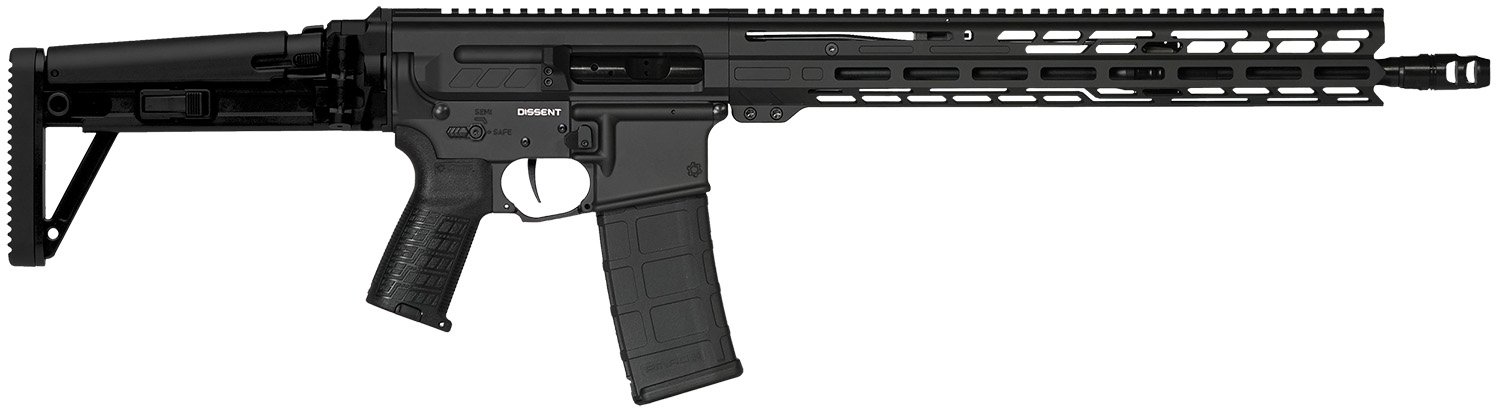 Take one trip to the range and youll swear this is everything the AR was meant to be. Chambered in 5.56mm with a 16.1 barrel, this DISSENT rifle is one of the smoothest shooters out there.The rear of the DISSENT rifle features the DISSENT side folding stock with adjustable length of pull and adjustable cheek riser. A forward non-reciprocating charging handle allows for quick and easy manipulation without coming off target and the M-LOK handguard with top picatinny rail provides ample mounting space for whatever accessories you please. Adjustable Gas Block If youre looking to shoot suppressed or just fine tune your DISSENT to your preferred ammo, the adjustable gas block gives you the freedom to dial in the gas system exactly to your liking. Never too much and never too little.