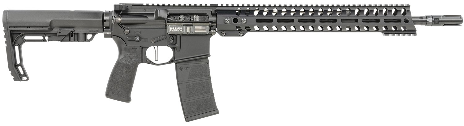 Patriot Ordnance Factory 01644 Minuteman Direct Impingement 5.56x45mm 30+1 16.50″ Nitride Treated Threaded Barrel, Black Hard Coat Anodized Receiver, Synthetic 6 Position MFT Minimalist Stock