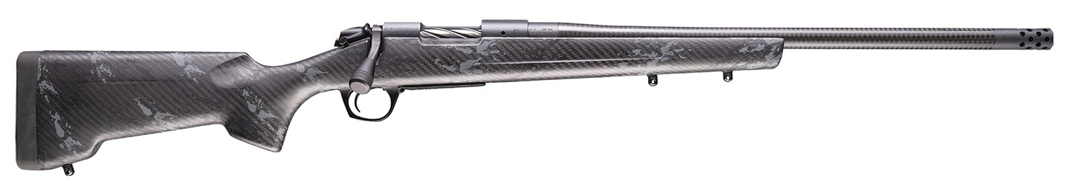 The Bergara Cima CF delivers for hunters who appreciate the balance and feel of a classic sporter style rifle. Weighing in at just 5.80 pounds, its the lightest rifle in our B-14 lineup. The Cima CF features a RTM carbon fiber sporter stock; Bergara CURE carbon barrel; spiral fluted bolt; Remington 700 style trigger; adjustable LOP, includes three 1/4″ spacers for a customized fit. Equipped with a hinged floorplate but easily converts to AICS compatible magazines via M5 DBM bottom metal inlet.