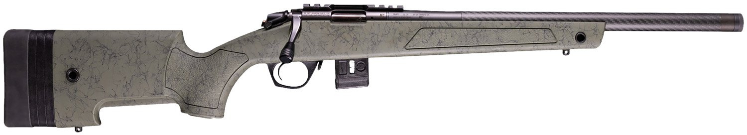 Bergara Rifles BMR012 BMR-X Carbon Fiber 17 HMR 10+1 18″ Carbon Fiber Threaded Barrel, Black Cerakote Picatinny Rail Steel Receiver, Adj LOP Black w/Green Webbing Synthetic Stock