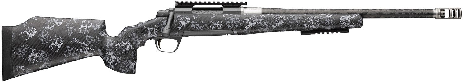 The X-Bolt 2 McMillan is a top-tier bolt-action big game hunting rifle optimized for use with an optional suppressor. Features include a McMillan Game Warden 2.0 carbon fiber stock with accent graphics; Cerakote carbon gray finish on a stainless steel barrel and action; lightweight carbon fiber wrapped stainless steel barrel with a 5/8″-24 threaded muzzle; redesigned receiver and spiral fluted bolt; DLX Trigger System; aluminum Picatinny rail for a bi-pod; 20 MOA Picatinny optics rail with bubble level; Pachmayr Decelerator recoil pad and X-Lock Scope Mounting System uses four screws per base for rock-solid attachment to the receiver. Includes Recoil Hawg muzzle brake and thread protector included.