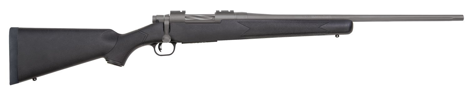 Mossberg 28069 Patriot Full Size 25-06 Rem 5+1 22″ Stainless Cerakote Fluted Barrel, Drilled & Tapped Cerakote Stainless Steel Receiver, Black Fixed Synthetic Stock, Right Hand