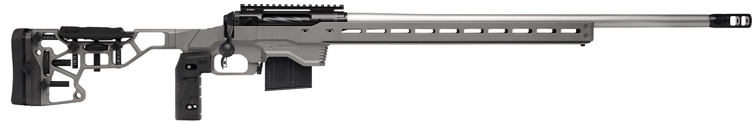 Savage Arms 57559 110 Elite Precision 300 Win Mag 5+1 30″ Matte Stainless, Matte Black Rec, Gray Cerakote Adjustable MDT ACC Aluminum Chassis Stock (MB Not Included)