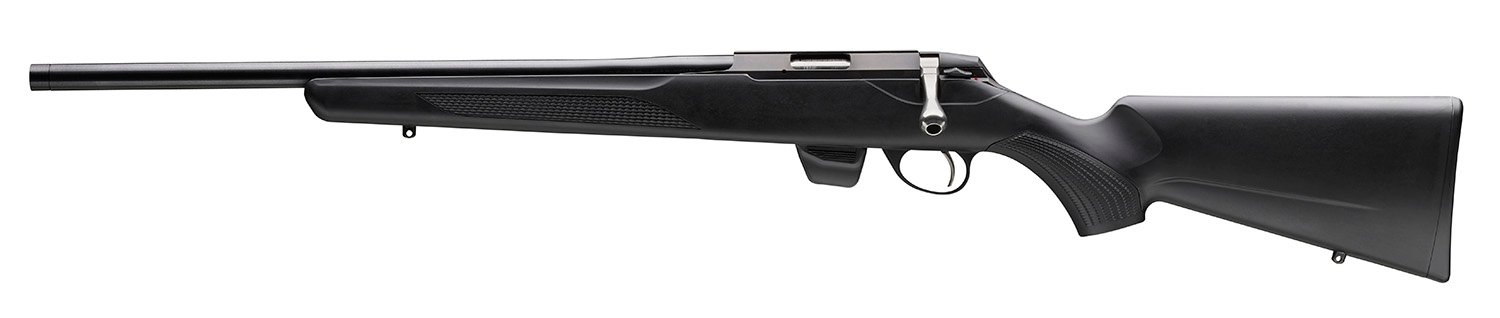 The Tikka T1x rimfire rifle is designed to handle a wide range of shooting tasks. Its unique barrel has a cross-over profile, which offers you the benefits and stability of a heavier barrel without noticeably increasing the overall weight. The action shares the same bedding surfaces and inlay footprint with the centerfire T3x rifles, while a modular synthetic stock that has interchangeable pistol grips, making it possible to modify the angle of the grip and has an additional attachment point which allows you to change the width of the stock’s fore-end.