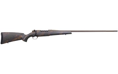 The next generation of the ground-breaking Backcountry family, the Backcountry 2.0 builds on the classic steel Weatherby Mark V action – with some key updates. Still equipped with a super thin and lightweight fluted barrel, it is contoured at a #1 MOD or #2 MOD depending on the chambering. The most noticeable upgrade is the new carbon fiber Peak 44 Blacktooth stock, the lightest versions of which tip the scales at under 20 ounces. Also grabbing the eye is the second generation 3DHEX recoil pad, the first production 3D printed pad the firearms world has seen. Hidden inside the pad are a series of interlocking voids that progressively collapse during recoil, expanding the time component of the recoil impulse and deadening the sharp kick of magnum chamberings. More pronounced spiral fluting on the bolt body not only trims a little weight, it also reduces bearing surface within the action and results in even smoother function. The newly-threaded bolt handle is equipped with a lightweight aluminum extended and skeletonized knob. Fit with Weatherby’s highly-effective Accubrake ST, this brake is blended to match the profile of the muzzle. With 30 symmetrically-spaced ports that help harness the recoil, it tames even magnum chamberings and makes them pleasant to shoot. Starting at just 5.2 lbs and 5.4 lbs in magnum chamberings, the Backcountry 2.0 also sports an updated paint scheme, with action and barrel protected by a Cerakote shell of Patriot Brown, with the stock carrying a brown and green pattern over exposed carbon fiber. Built to be the lightest possible rifle and chambered in some of the world’s fastest cartridges, the Backcountry 2.0 is a worthy successor to the throne.