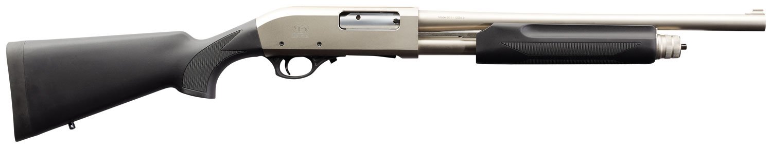 Charles Daly 930228 301 Tactical 12 Gauge Pump 3″ 5+1 18.50″ Nickel Vent Rib Barrel, Nickel Aluminum Receiver, Black Fixed Synthetic w/Pistol Grip Stock,