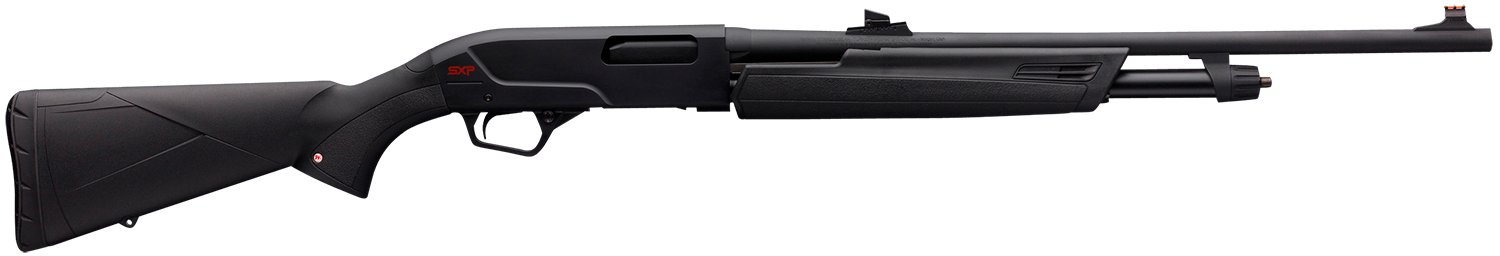 Pick up the Winchester Super X Pump (SXP) shotgun and experience the light weight, centered balance and instant pointability firsthand. The Super X design provides you with the fastest follow-up shots. No other pump offers the feeling of an inertia-assisted slide-action that can deliver three shots in a half second. Whether its super-speed clays or fast-flushing upland game, keep up with shootings fastest action with the Super X Pump, the perfect choice for pump shotgun lovers. This Black Shadow Deer model features a fully rifled barrel and TruGlo fiber optic sights.