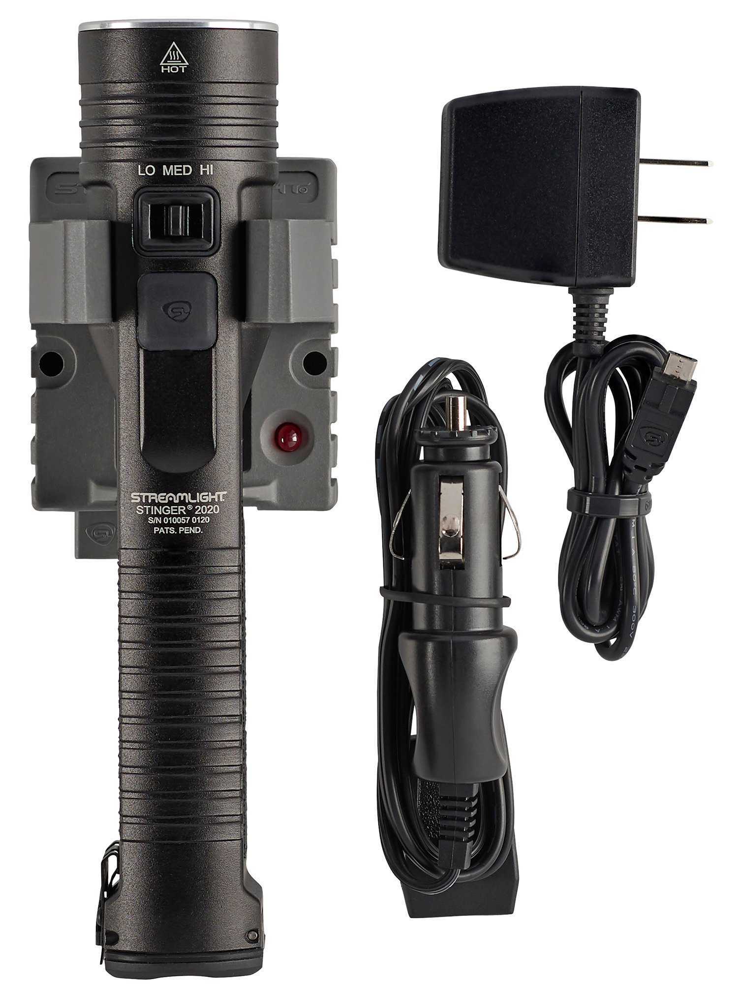 The Stinger 2020 is the next evolution in high-performance flashlights. Its aluminum alloy body with an anti-roll design is ergonomically shaped for a sure grip. It features dual power switches and an intuitive mode selector switch for ease of use, and offers multiple charging options for your convenience. In addition, it has a body switch and tail cap tactical on off switch and a battery status indicator. The Stinger 2020 Li-Ion USB rechargeable battery packs can be charged inside or outside the flashlight.