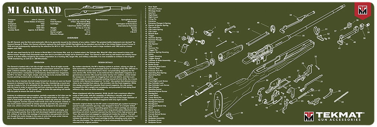 TekMat TEKR36M1GARAND-OD M1 Garand Cleaning Mat OD Green Rubber 12″x36″ M1 Garand Parts Diagram